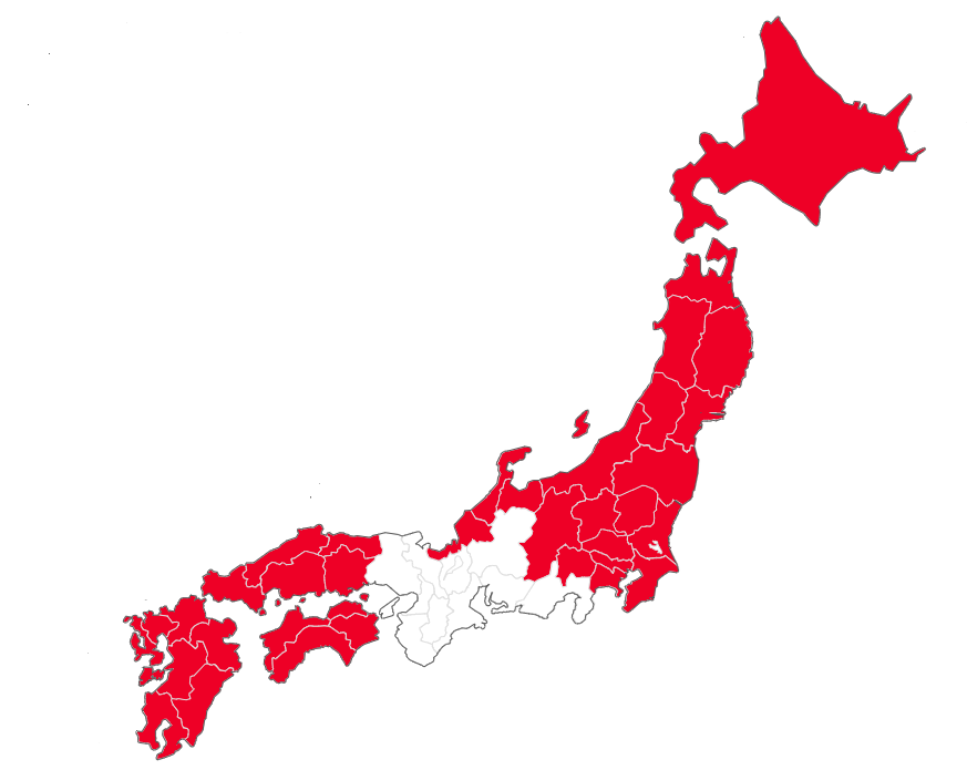 - 九州:福岡、佐賀、長崎、大分、宮崎、熊本、鹿児島
