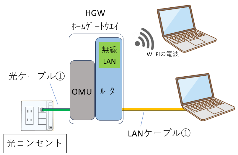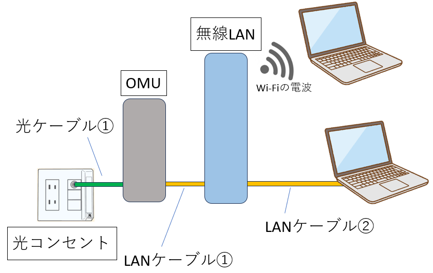 前述したように、auひかりのマンションでの設置は、物理的問題からオール光ファイバーとはいきません